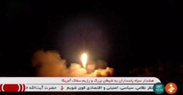 TV estatal iraniana divulgou imagens do lançamento de mísseis contra alvos norte-americanos no Iraque (Reprodução)