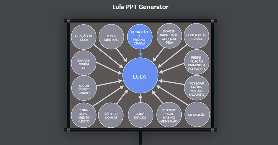 Quando o procurador Deltan Dallagnol mostrou sua apresentação em Power Point ontem para anunciar a denúncia do ex-presidente Lula, uma das telas instantaneamente virou um meme. E como não podia deixar de ser, os brasileiros deram aquele passo a mais nessa instituição que é o meme no Brasil e hoje temos o Lula PPT Generator na internet.