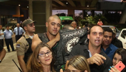 Em 2015, Jair Bolsonaro começava a construir sua candidatura viajando pelo Brasil. Quando foi a Recife (PE), muita gente apareceu no aeroporto para recepcionar a família Bolsonaro, entre eles um skinhead dos Carecas do Brasil. O grupo é acusado pelo Ministério Público por ter espancado um jovem negro e gay em Recife. Também são suspeitos de espalhar cartazes pela cidade com a frase “Hitler tinha razão”.
