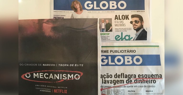 TODAS as capas dos jornais impressos moribundos do PiG foram encapados por quatro páginas de publicidade do mais novo filme do Padilha.