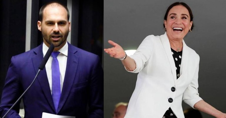 3 - O Deputado Eduardo Bolsonaro, seu irmão e vereador Carlos Bolsonaro e Regina Duarte foram alguns dos que divulgaram essa mentira de maneira inescrupulosa e perversa. Serão devidamente processados e responderão pelo crime vil que cometeram.