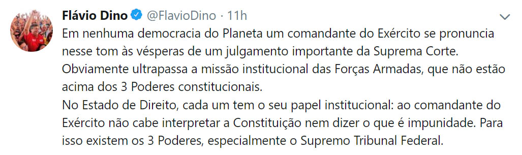 Presidente Flávio Dino botaria Villas Bôas na cadeia!
