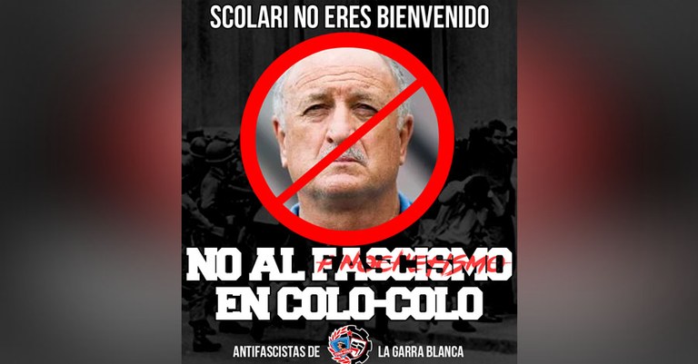 "É repugnante saber que Luiz Felipe Scolari é pretendido pelos nefastos do Colo Colo como treinador do nosso precioso clube. É um sujeito nefasto que não teve vergonha de elogiar o genocida Pinochet e de indicar que às vezes são necessárias violações dos Direitos humanos para manter a ordem", diz trecho da nota. "O nosso coletivo 'Antifascistas de la Garra Blanca' declara guerra à chegada de Scolari e qualquer um que abrace práticas e idéias fascistas", segue o texto.